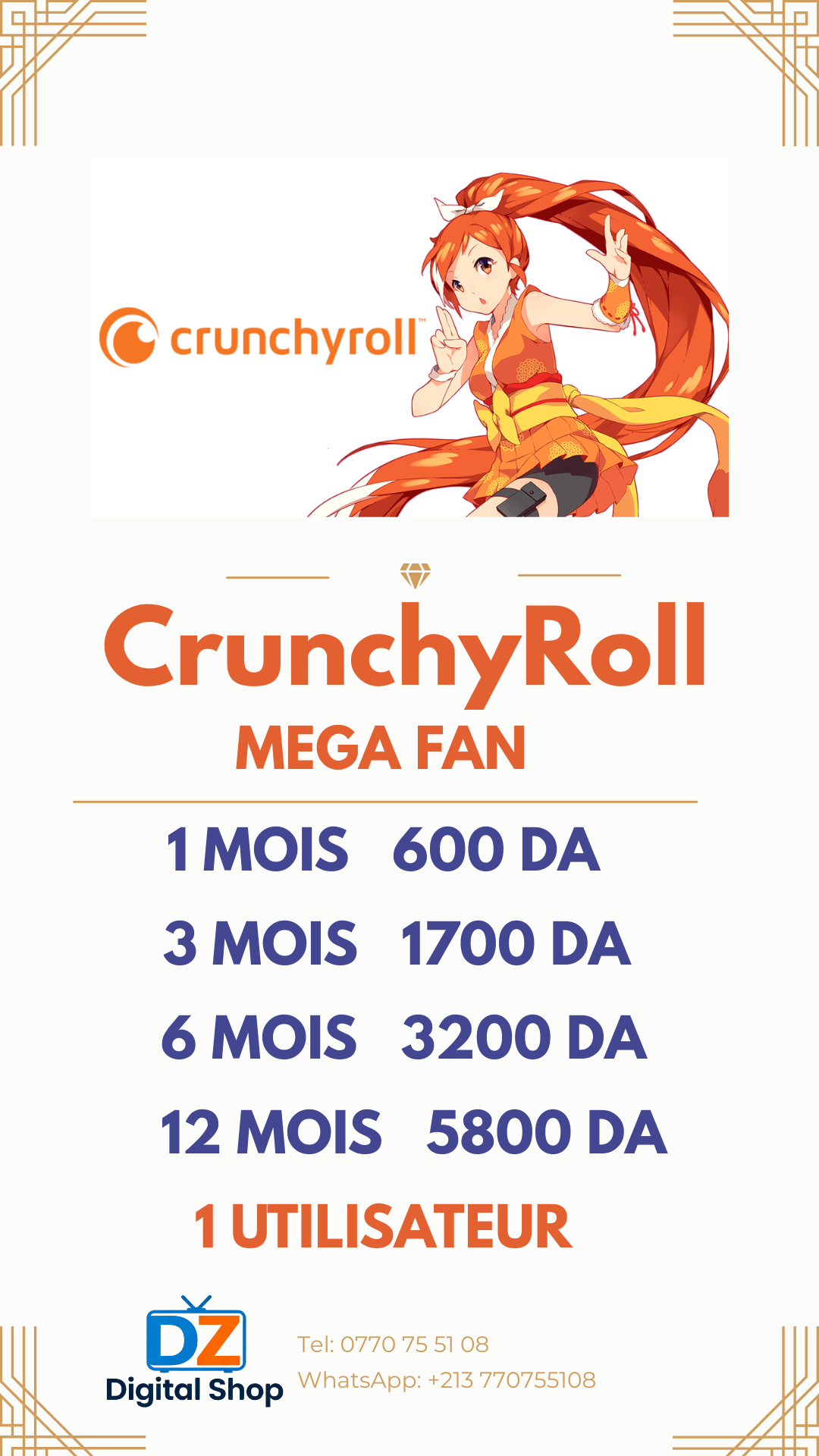 - Accès Illimité au Catalogue : Accédez à la bibliothèque complète de Crunchyroll.
